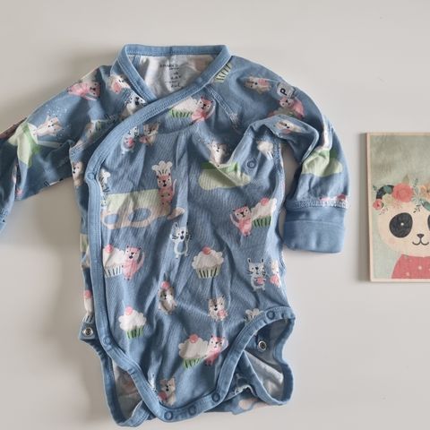 Polarn o pyret body 68cm sekä ompelijan tekemät ribbihousut. Housuissa ei moitteita, bodyn takana hälyttimestä reikä(on kestänyt pesua)sekä edessä pieni piste, kaula-aukko aavistuksen kellastunut, ei pistä silmään.