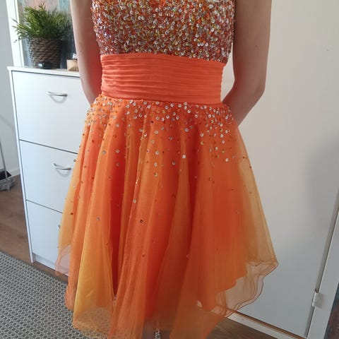 Kerran pidetty rippijuhlissa. Koko uk 12, 38-40, suosittelen kokeilemaan. Mekko on jo vanha mutta kunto kuin uusi. Takana vetoketju. Nouto Virroilta.