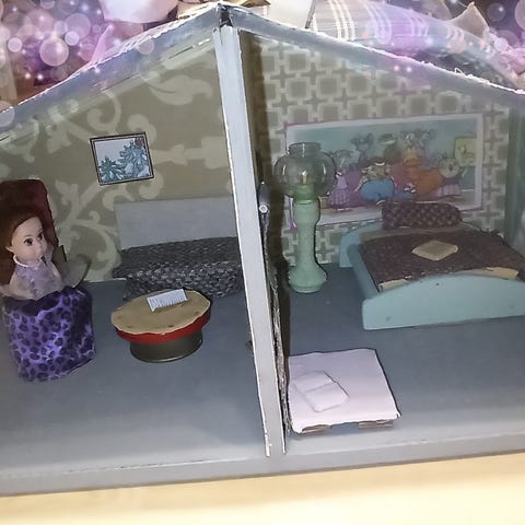 Posliinia tms olevat astiat nukkekotiin. Kannu 3,5cm korkea. Tarjoilulautanen ja 6 mukia. Näillä ei ole leikitty, olivat tytön mielestä liian isoja hänen nukkekotiin. Varsinkin lautanen ja kannu enemmän barbikokoa.