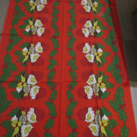 Pellavainen joulupöytäliina tarpeettomana, koska ei ole ollut sopivaa pöytää sille.
