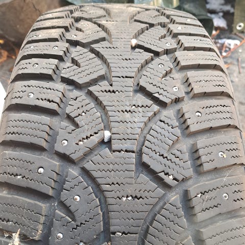 Siitä seuraavalle käytetyt laatu nokian Hakkapelitta8 nastarenkaat, ollut M4 takarenkaina ja sen takia nastat hieman kärsineet, pintaa näissä on noin 5-7mm.