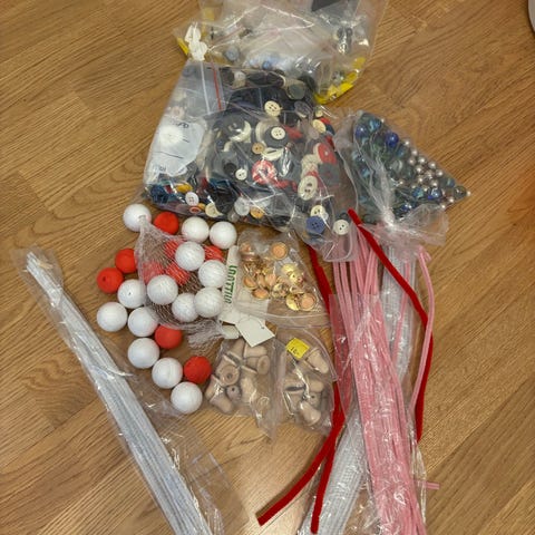Myydään kasa askartelu tarvikkeita. mm. Tarroja, askartelu palloja, paperinarua, silkkipaperia, 5kpk metallisia kranssirenkaita.