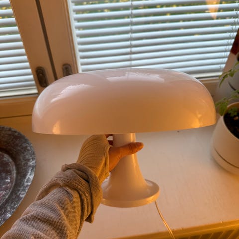 Pieni halkeama jalassa, liimattu siististi, ei osu silmään kun katsoo valaisinta. Toki jos läheltä tarkastelee! Sijaitsee Helsingin Kalliossa :)