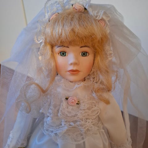 Tonner doll companyn punatukkainen morsiannukke Kit laatikossaan. Nuken pituus on noin 40 cm. Kitillä on kihara tukka ja vihreät silmät. Nivelet kaulassa, olalla, kyynärpäissä, ranteissa, rinnan alla, vyötäröllä, lantiolla ja polvissa. Mukana ständi ja kaikki alkuperäiset paperit. Asuna satiinista ja pitsistä ommeltu morsiuspuku huntuineen ja helmikoristeisine asusteineen (sandaalit, kaulakoru, kaksi rannekorua ja korvikset) sekä kukkakimppu (varressa lenkki, jonka avulla pysyy nuken kädessä).