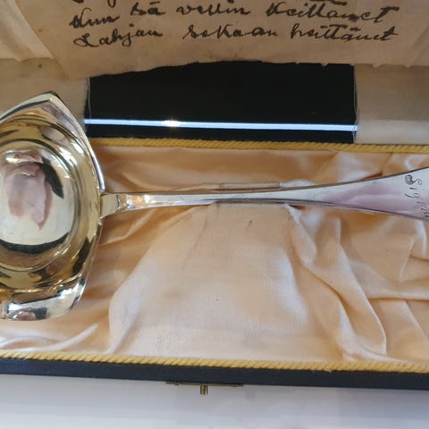 Myynnissä hopeakauha alkuperäispakkauksessaan.