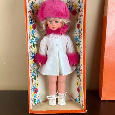 Tonner doll companyn vaaleatukainen, mod-tyyliin pukeutunut Sammie-nukke laatikossaan. Nuken pituus on noin 40 cm. Sammiella on pitkä, suora tukka ja siiset silmät. Nivelet kaulassa, olalla, kyynärpäissä, rinnan alla, vyötäröllä, lantiolla ja polvissa. Mukana ständi ja aitoustodistus. Asuna 60-luvun tyylinen pinkki-musta-valkoinen kokonaisuus: mekko, takki, sukkikset (oikeastaan kahdet: mustien alla on ihonväriset estämässä värjäytymistä), hiuspanta, korkeavartiset saappaat, laukku ja hauskat renkaista kootut kaulukoru ja korvakorut.