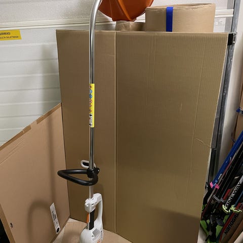 Stihl FSE 60 sähkökäyttöinen ruohotrimmeri, oranssi väri, kevyt ja kätevä käyttää. Sopii ruohon ja pienten kasvustojen trimmaamiseen. Mukana pitkä sähköjohto.