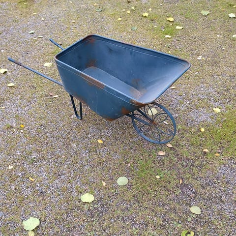 Vanhat ja ruosteiset mutta ehjät kottikärrit pihatöihin.