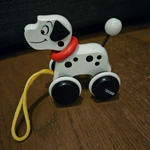 BRIO aktivointilelu, jossa puiset punaiset ja luonnonväriset osat. Lelussa on puinen runko ja pyörivät elementit eläinhahmoineen. Kehittää motorisia taitoja. Pohjassa imukuppi. Koko noin 15x10 cm.