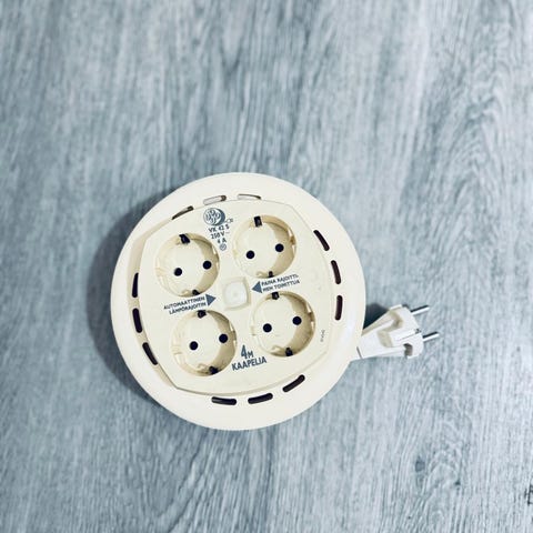 Uusi kela missä 1kpl voimavirta- ja 2kpl valovirtapistorasioita. Johdon pituus 4,5m.