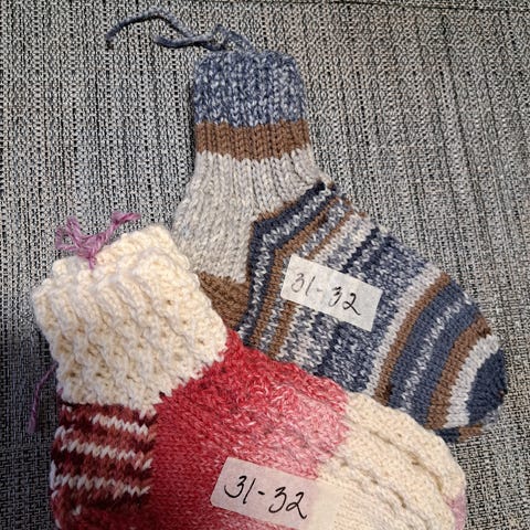 Myydään käsinneulottuja villasukkia,vahvistetut kantapäät,lanka 7-veljestä.