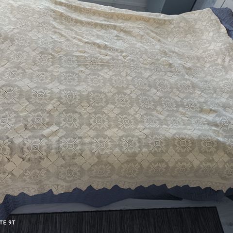 Käyttämätön kalastajalangasta virkattu päiväpeitto. Tätä voi käyttää sängyllä tai vaikka pöytäliinana. Taidokasta käsityötä. Käsityö sijaitsee Liedossa. Tarvittaessa voin postittaa, jolloin kulut lisätään tuotteen hintaan.