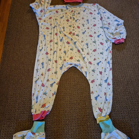 Haalarissa on vetoketju edessä ja syvät taskut. Voin laittaa mittoja pyydettäessä mutta koko sopiva 148-164 cm lapselle tai nuorelle tai XXS kokoiselle aikuiselle.