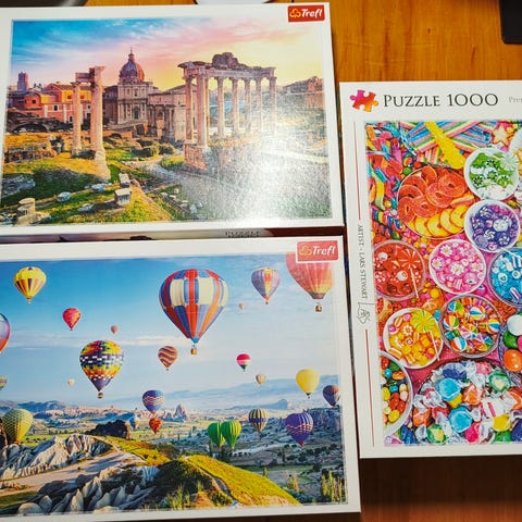 Hyväkuntoisia palapelejä 4 kpl jäljellä. Kaikki itse koottu ja sen jälkeen pussitettu, palat tallella. Nouto kotoa Alisen alueelta tai Nokian Prismalta. Omien menojen mukaan myös Tampereelta onnistuu Aleksanterinkadulta. 6€/kpl HUOM! Alennettu hinta ei näy yksittäisissä kuvissa.