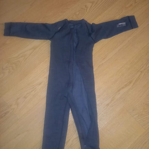 Tummansininen vihrein resorein. Yksi reikä paikattu, toinen pieni reikä löytyi takaa syynätessä. Kunto muuten ok, on pehmeä eikä kutita. Tällaisenaan ollut käytössä ja hyvin pelitti.