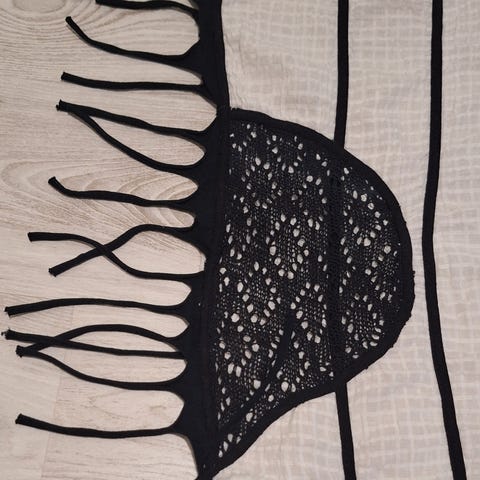 Hieno, uniikki kaulahuivi Papiina-merkiltä. Upea vaikka hartioille teatteriin tai muuhun juhlavaan tilaisuuteen. Värikkäät raidat ovat huovutettua villaa, mustat osat kevyttä harsoa.