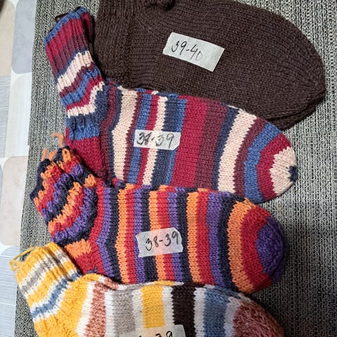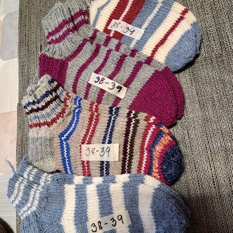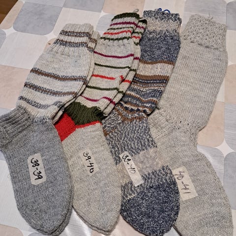 Myydään käsinneulottuja villasukkia,7-veljestä lanka,vahvistetut kantapäät.