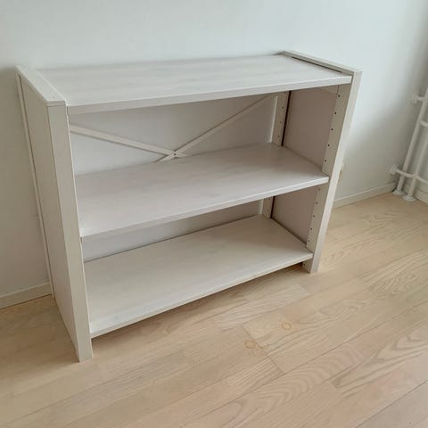Erittäin siistit, kuultovalkoiset Lundian avohyllyt. Kuvassa 1kpl, mutta kasassa siististi tallessa on viereen toinen vastaava tukiristikoineen. Eli kokonaisleveys n. 245cm. Huom! pystykappaleita siis kolme, eli ei saa kahta erillistä hyllyä, vaan yhden pidemmän. Muokattavuutensa ansiosta kuitenkin lisäosilla saa mieleisekseen! Hyllylevyjä yhteensä 8.