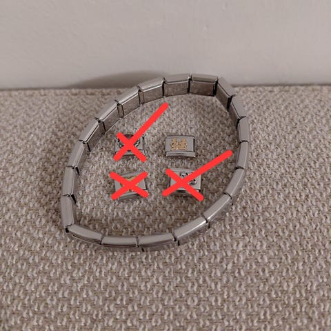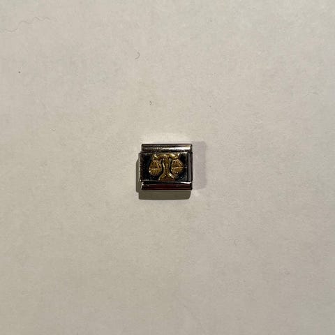 Aito Nomination korupala, horoskooppi Neitsyt. Hyväkuntoinen käytetty. Pala terästä, kuvio kullattu kolmella zirkonilla.