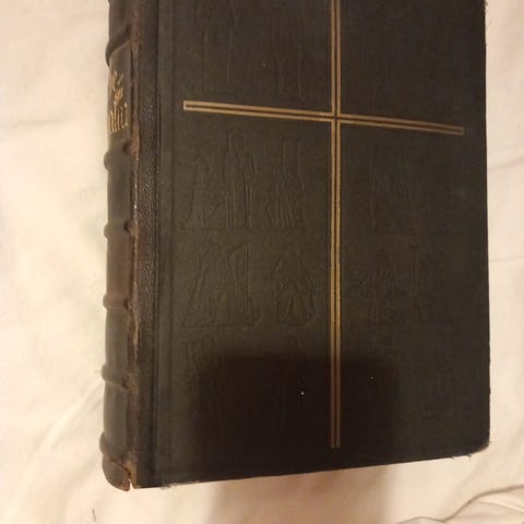 Pyhä Raamattu. Korkeus 28,5 cm. Leveys 23 cm, paksuus 7 cm, paino 3,2 kg