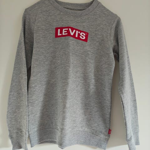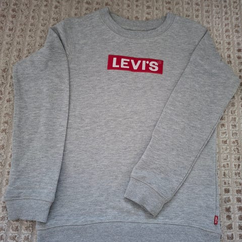 Levi's harmaa pitkähihainen paita lasten noin koossa 128, suunniteltu pojille. Paita on valmistettu mukavasta materiaalista ja siinä on selkeä Levi's-logo rintamuksessa.