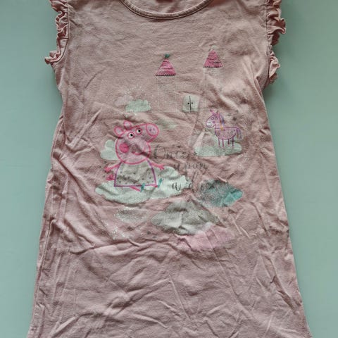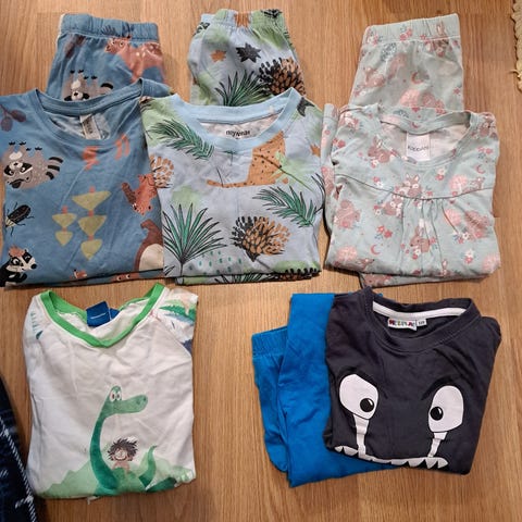 KappAhl lasten pyjamat, koko 110/116 cm, tytöille. Pyjamassa on vaaleanpunaiset housut, joissa on tähtikuviot, ja sininen pitkähihaisen paidan yläosa, jossa on Pipsa Possu ja Lotta Lammas ja tekstiä. Materiaali on pehmeää ja soveltuu lasten yöpukeutumiseen.