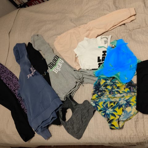 Myydään hyväkuntoiset Tyttöjen housut pakettina n.160 kokoa. Hintaan 20e