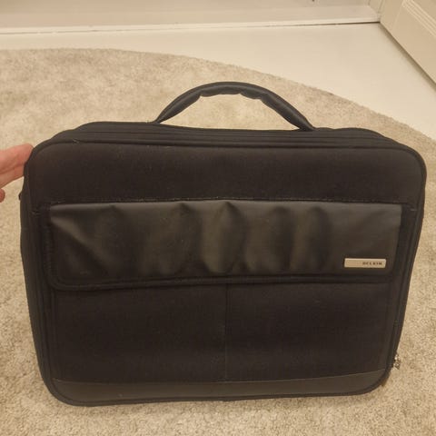 tietokonelaukku musta väri, sopii kannettavien tietokoneiden suojaamiseen ja kuljettamiseen. Laukku on valmistettu kestävästä materiaalista ja siinä on vetoketjukiinnitys. korkeus 25cm, leveys 35cm