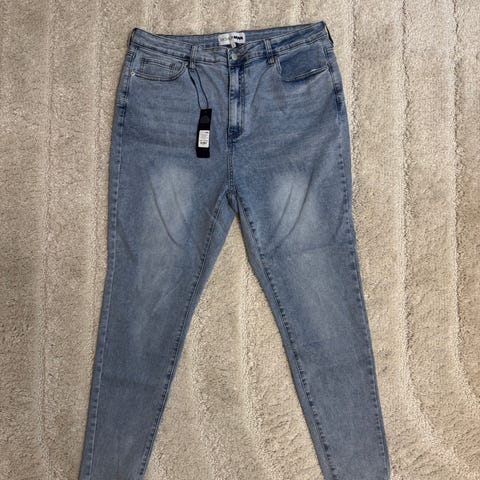 Uudet leveä lahkeiset farkut , 6 taskua, vetoketju, nappi,