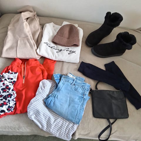 Hyväkuntoisia vaatteita. Osaa käytetty vain kerran ja pesty. Paidat kaipaa silittämistä, vain parista vaatteesta löytyy hieman nyppyjä.