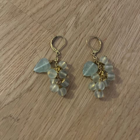Myydään uudet kauniit valkoiset riippuvat korvakorut. Renkaan halkaisija 3,5cm. Korvakorun pituus renkaasta alkaen 5,5cm.