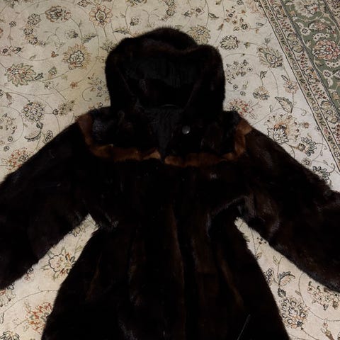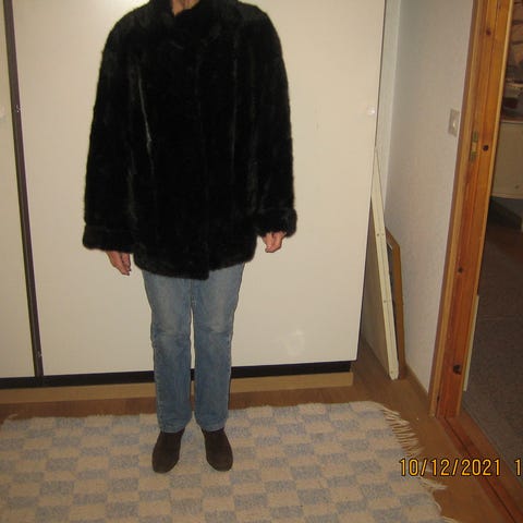 Kaunis, käännettävä karamellinvärinen minkkitakki. Kevyt ja lämmin. Toinen vedenpitävä puoli suojaa märältä lumelta. Hyvässä kunnossa, mutta taskuissa on pieniä naarmuja, kuten kuvassa näkyy