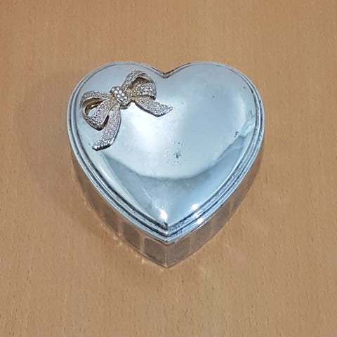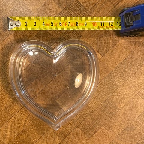 Sydämen muotoinen korurasia, koristeltu pienillä ja suurilla ruusukukilla sekä nauhakoristeilla. Käsinmaalattu. Käyttämätön, säilytetty pussissa. Yli 20 vuotta vanha. Rasian korkeus kannen kanssa n. 4,5 cm, sydämen max. korkeus n. 8.5 cm, max. leveys n. 9 cm. Postitus onnistuu postimaksuja vastaan.