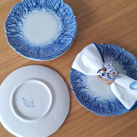 Vintage sinivalkoiset lautaset 20 cm – 5 kpl