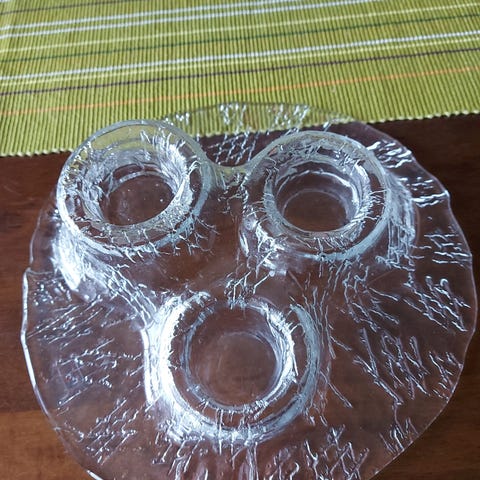 Seinämallinen kynttiläteline, muurlan lasin. Holkki pulloon missä voi polttaa sitten kynttilää. Kaksi metallista tuikkukippoa. Löytyi vielä kolmaskin samanlainen tuikkukippo.