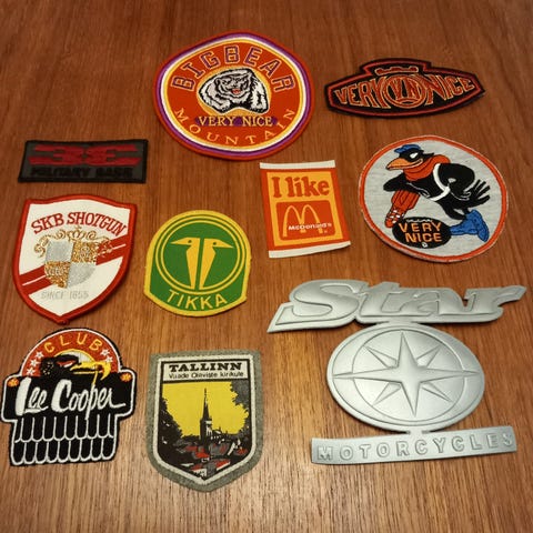 Mustavalkoinen Mastermind Japan -hihamerkki. Päällinen kangasta. Kääntöpuoli hiukan muovimaista, saattaisi kiinnittyä silittämällä. Ompelemalla ainakin saa kiinnitettyä. Halkaisija enimmillään noin 9,5 cm. Kunto uutta vastaava.