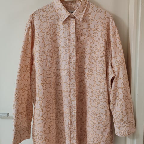 Uusi Runsas Piirto paitapusero. Materiaali ihanaa cuproa. Suora istuvuus ja siinä on Piirto Unikko -kuosi. Paidassa on piilonappikiinnitys, ja takapuolen pääntie sauma, jossa on laskoksia. Mansettihihansuissa on napinsuljenta. Helmassa on sivuhalkiot, ja se on takaa hieman pidempi kuin edestä.