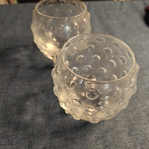 Iso sydän 12,5 halk. kork. 6,5 cm. Rösöreunainen kippo halk. 10,3 ja kork. 6,5 cm. Pienempi kynttilä/tuikkukippo halk.9 ja kork. 4,5 cm. Iittalan pieni tuikku 58 x 28 mm. Ruskea joutsen, kork. 12,5 cm, ei ole varmuutta onko nokasta pienen pieni pala pois, vai ei. Kaikki yhteensä 15 €.