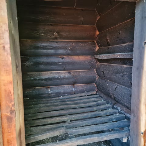 Koe käytetty ,Savustusmökki lämpömittarilla.Nyt tämä nautinnollinen makumailmaa kutkuttava mökki jouluksi kotiin, ja saat joulupöytääsi itsesavustamasi kalat/ lihat.