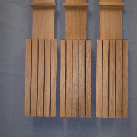 Tamminen veitsiteline. Tarkoitettu lusikkalaatikkoon laitettavaksi, mutta voinee käyttää pöydällä/laatikossa muutenkin. Mittoja kuvissa. Löytyy useita. 10e/kpl.