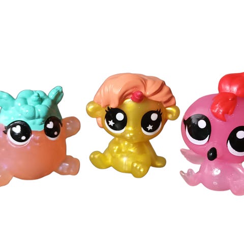 Kuvassa on useita ZURU 6 Surprise Mini Brands -kapseleita. Tämä on suosittu yllätyslelujen sarja, joka sisältää oikeiden tuotemerkkien pienoismalleja.