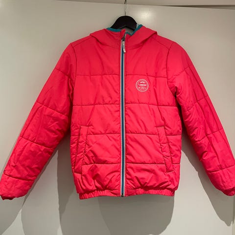 Ihana toppatakki, jonka voi kääntää ympäri. Toinen puoli väriltään ruusukulta ja toinen puoli hopea. Takissa huppu ja vetoketju. Hupussa ja helmassa kiristettävät kuminauhat. Lyhyt muodikas malli.