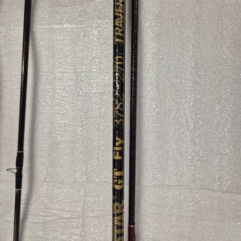 Flueger merkkinen 2.44m pitkä vapa, kela ja siimat mukaan. Käytetty yhden kerran, ei ollut oma juttu.