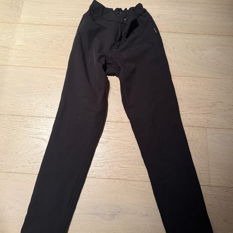 Reima Mighty lasten housut tytöille, koko 152 cm. Väri musta. Housuissa on vyölenkit ja joustava vyötärö takaosassa. Materiaali on pehmeää ja sisäpinnaltaan fleece-mäistä, mikä tuo lisälämpöä viileämpiin päiviin. Sopivat arkeen ja ulkoiluun lapselle, jonka pituus on noin 152 cm. Huolto-ohjeet löytyvät vaatteen pesulapusta.