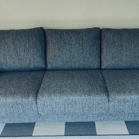 Jämäkkä, ylellisen pehmeä, näyttävä sohva ja moderni, iso sohvapöytä. Yht. 250e. Käteinen ja nouto.