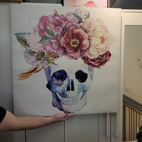 Kehyksen ulkomitta 19x36cm. En mielelläni postita koska taulu saattaa särkyä. Voin tarvittaessa kuljettaa korvausta vastaan