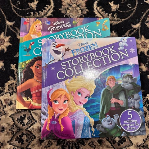 Kaksi englanninkielistä lasten read and sing storybooks, Disney Princess ja Disney Frozen.