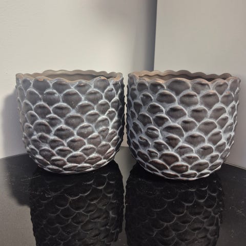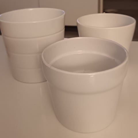 Myyn siistit ja ehjät, keraamiset suojaruukut, 2 kpl. Koko 15 cm x 13 cm.. Myyn molemmat yhdessä.