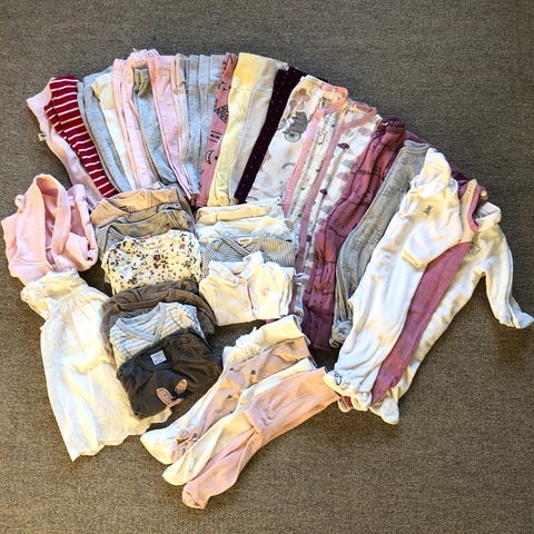 Myydään vaatepaketti koossa 62(+1 body koossa 60). Hieno kunto, osa käyttämättömiä. En ole löytänyt mitään tahroja, reikiä eikä haalistumia.