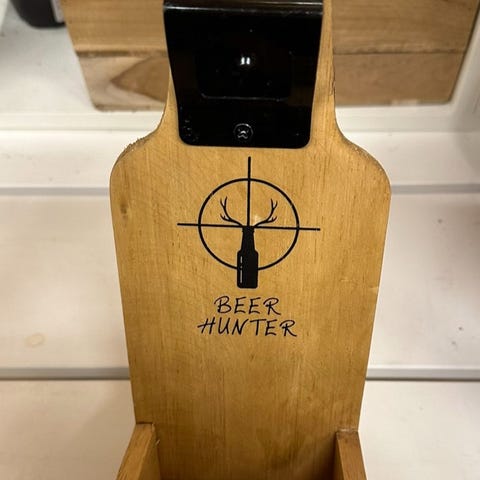Koriste koostuu puupohjasta, johon on kiinnitetty erilliset kirjaimet muodostamaan sana "HOME".